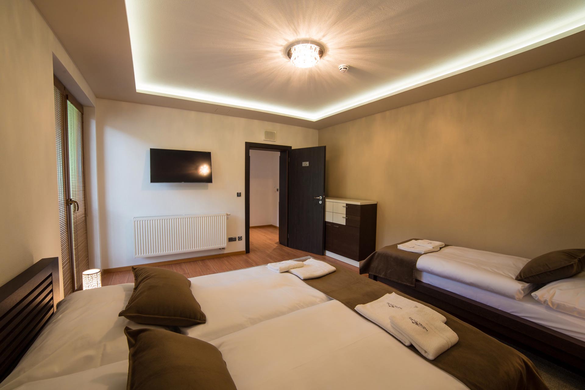 Hotel nájdete v známej baníckej obci Hodruša-Hámre, ktorá sa rozprestiera v nádhernom prostredí Štiavnických vrchov. Vám, vašej rodine, priateľom, kolegom či obchodným partnerom zabezpečíme komfortné ubytovanie vo vkusne zariadených izbách za priaznivé ceny. Hotel ponúka štýlové izby pre dvojice, elegantné rodinné izby či luxusný apartmán. Celková kapacita zariadenia je 42 pevných lôžok a 5 prísteliek.