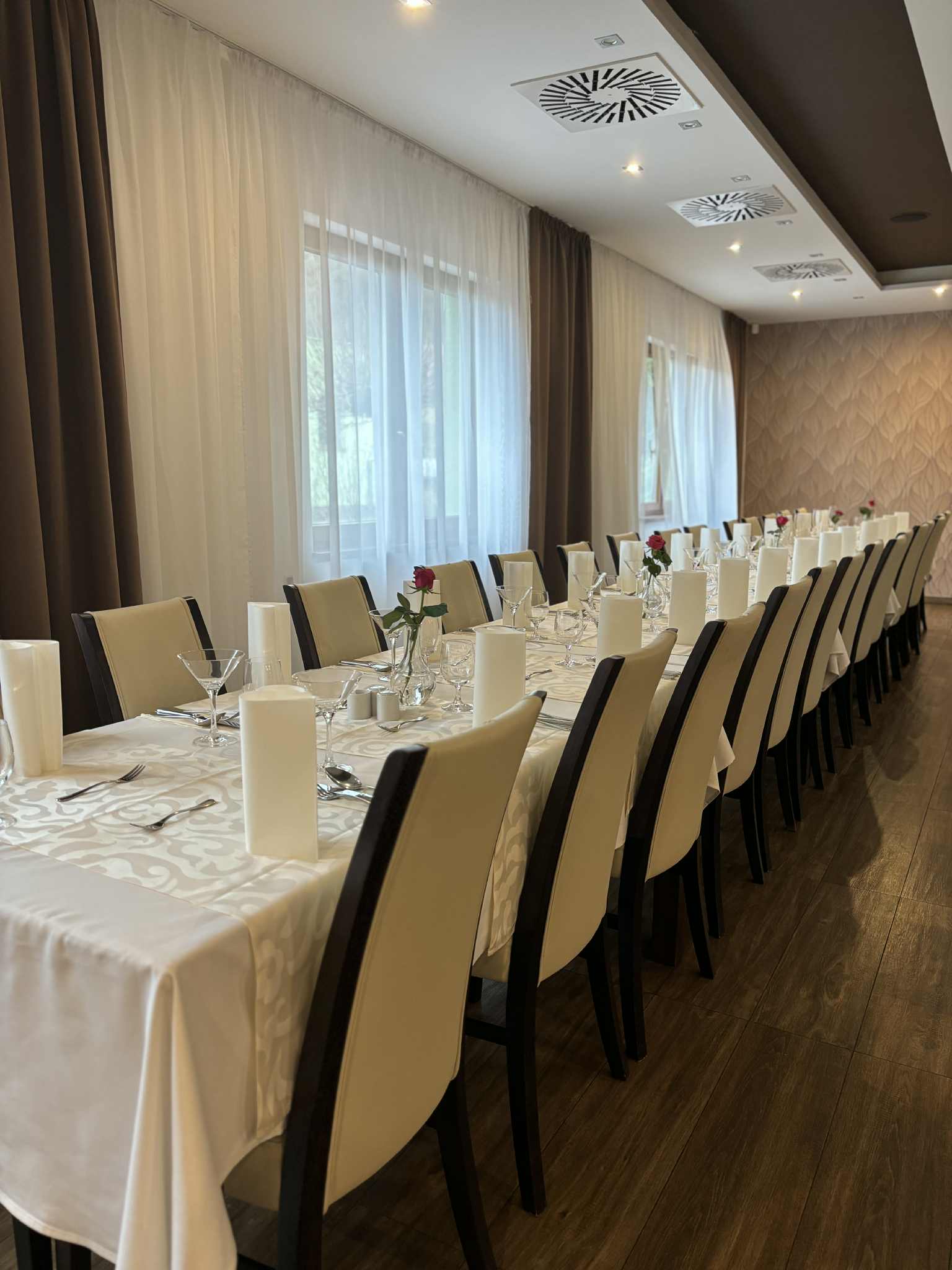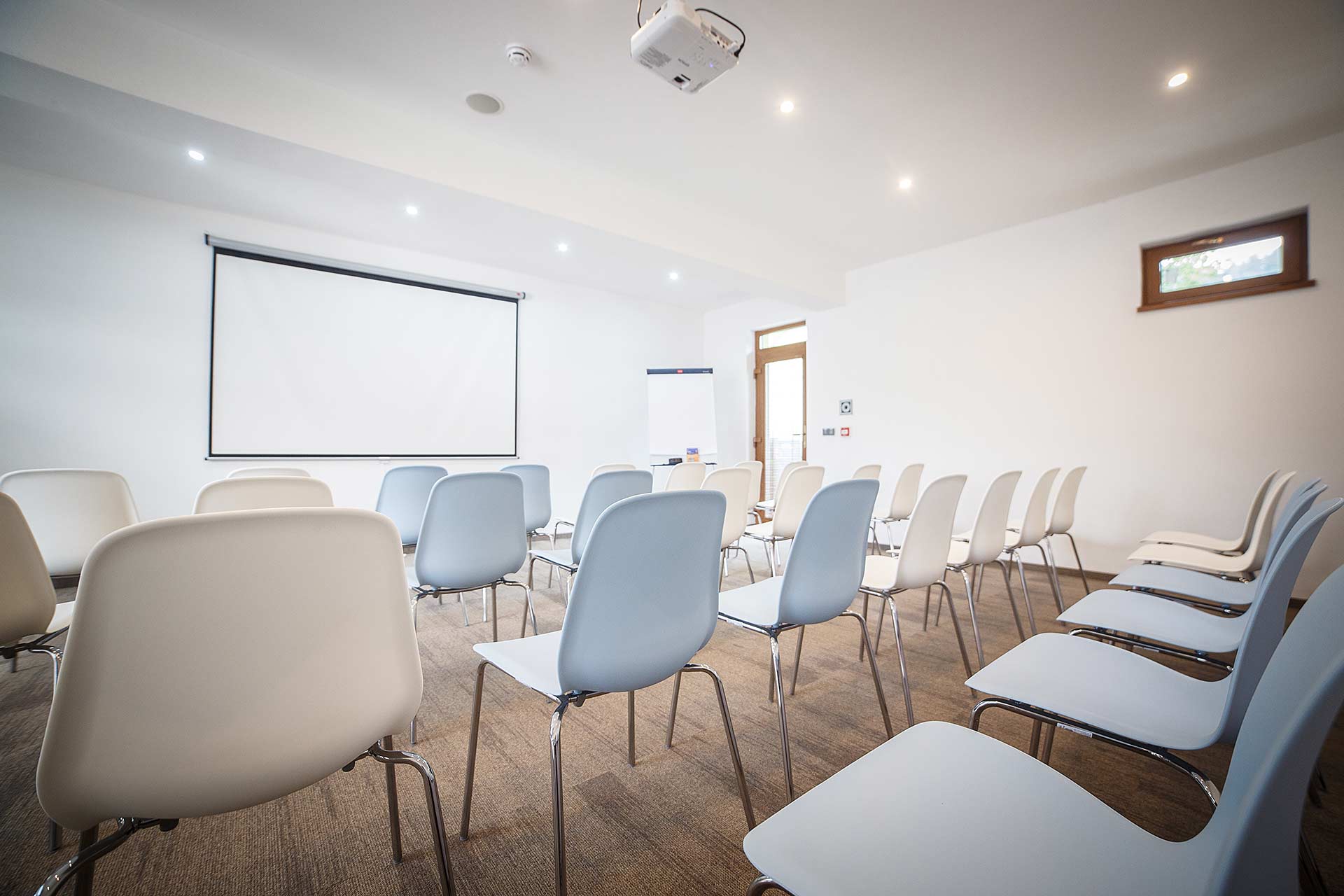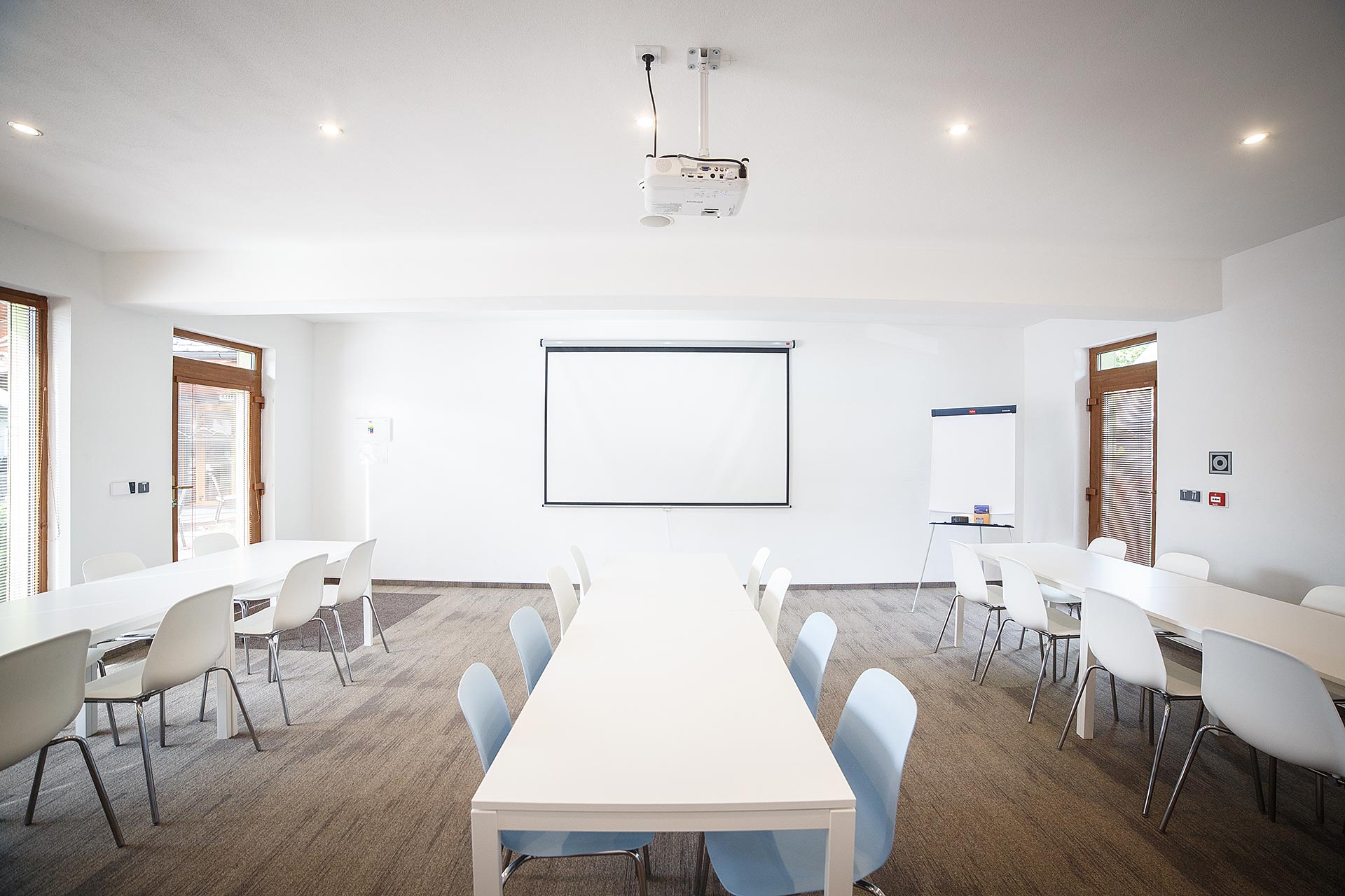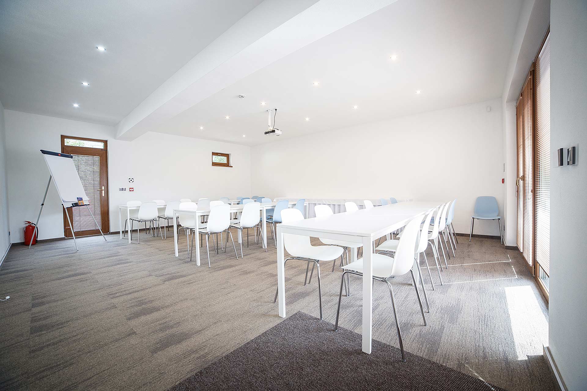 - Kongresové sály: 1 sála pre 44 osôb v divadelnom sedení a 35 miest pri sedení za stolmi, 2 sála pre 20 osôb