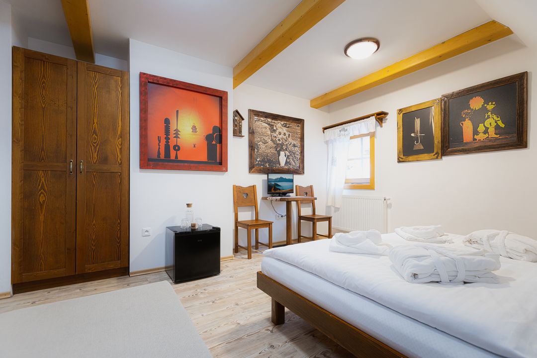 - Každá izba má svoju vlastnú dizajnovú kúpeľňu s toaletou, podlahové vykurovanie, sprchový kút, konferenčný stolík, káblovú TV a WI-FI internetové pripojenie 150/150 Mbps.