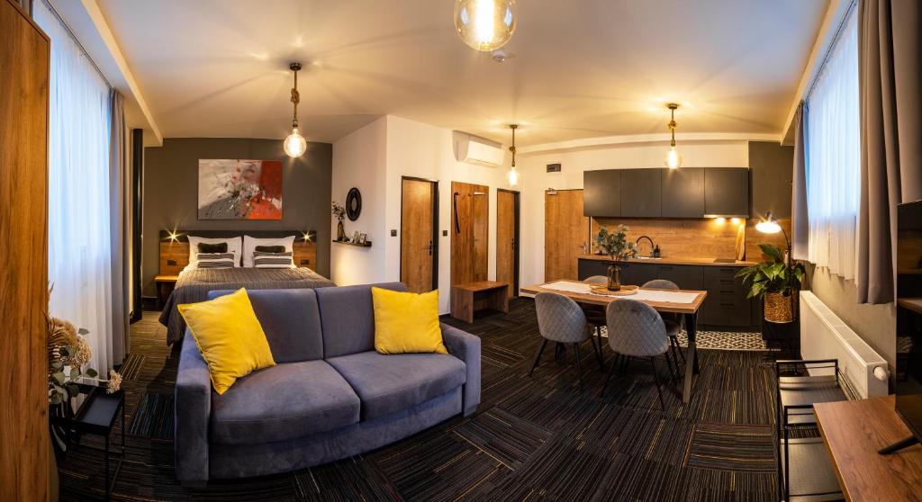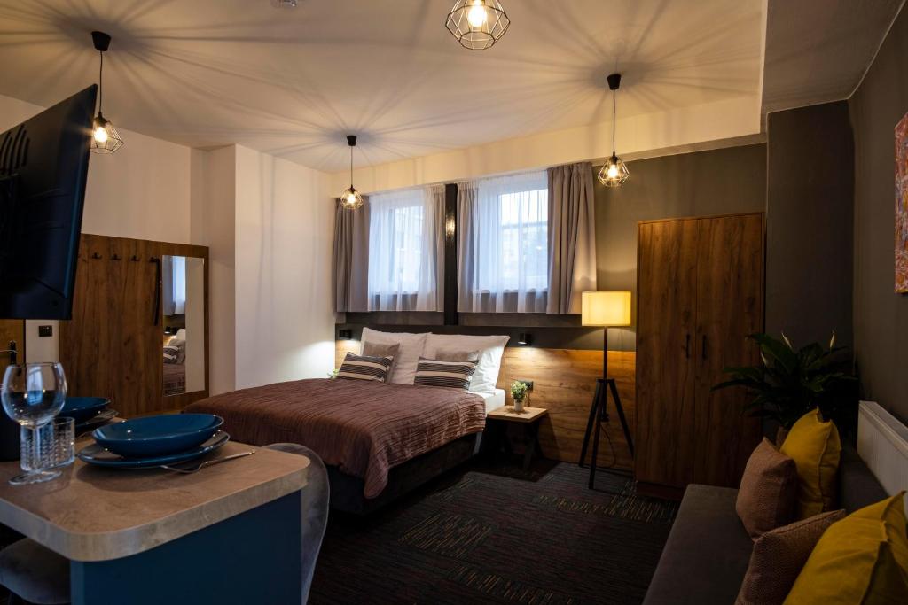 Moderne zariadený mestský Penzión Mamut je situovaný v centre mesta Revúca s dobrou dostupnosťou a bezproblémovým parkovaním. Nájdete nás pri predajni potravín Billa v Revúcej. Naše štýlové apartmány ponúkajú všetko čo potrebujete, či už pre váš oddych alebo pracovné povinnosti. Pre hostí máme k dispozícii 4 nadštandardne vybavené apartmány s vlastnou kuchynkou a 4 dvojlôžkové moderne zariadené izby v mestskom štýle. Plnohodnotne vieme ubytovať až 23 hostí.