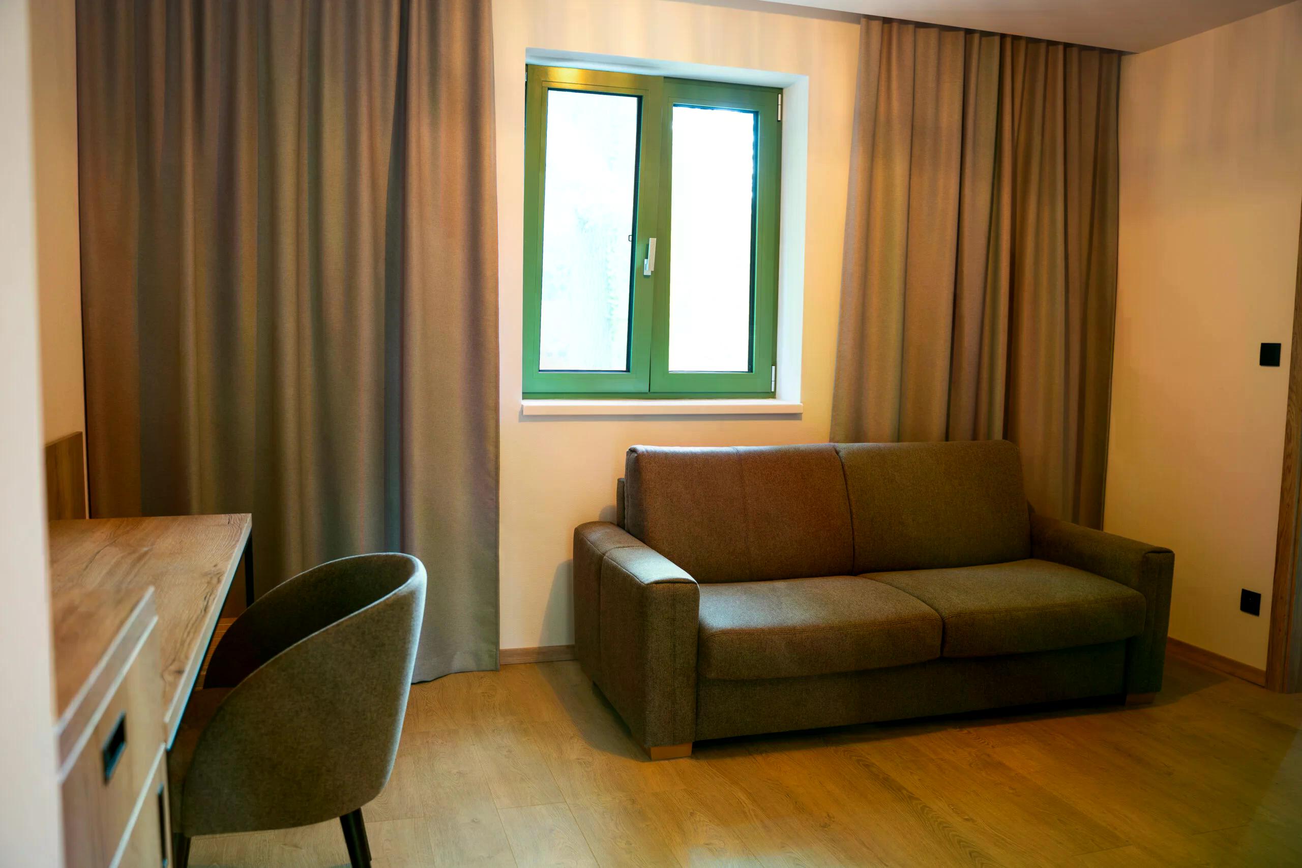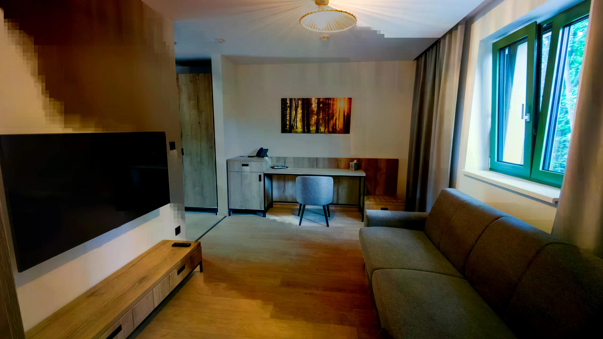 - Užite si pokojný pobyt v prémiovom apartmáne na poschodí domu Púšť. Priestranný apartmán so samostatnou spálňou a obývačkou disponuje vlastným balkónom s krásnym výhľadom a väčším súkromím. Pre váš maximálny komfort je apartmán klimatizovaný. Spálňová časť je vybavená komfortnou manželskou posteľou a v obývacej časti sa nachádza rozkladací gauč pre dve osoby. Apartmán je jediným apartmánom v budove, čo zaručuje maximálny komfort a súkromie počas vášho pobytu. Apartmán je ideálny pre rodiny s deťmi, ktoré chcú načerpať novú energiu, stráviť spoločný čas a vychutnať si aktívny oddych v príjemnom prostredí, prípadne pre dvojice vyhľadávajúce súkromie.