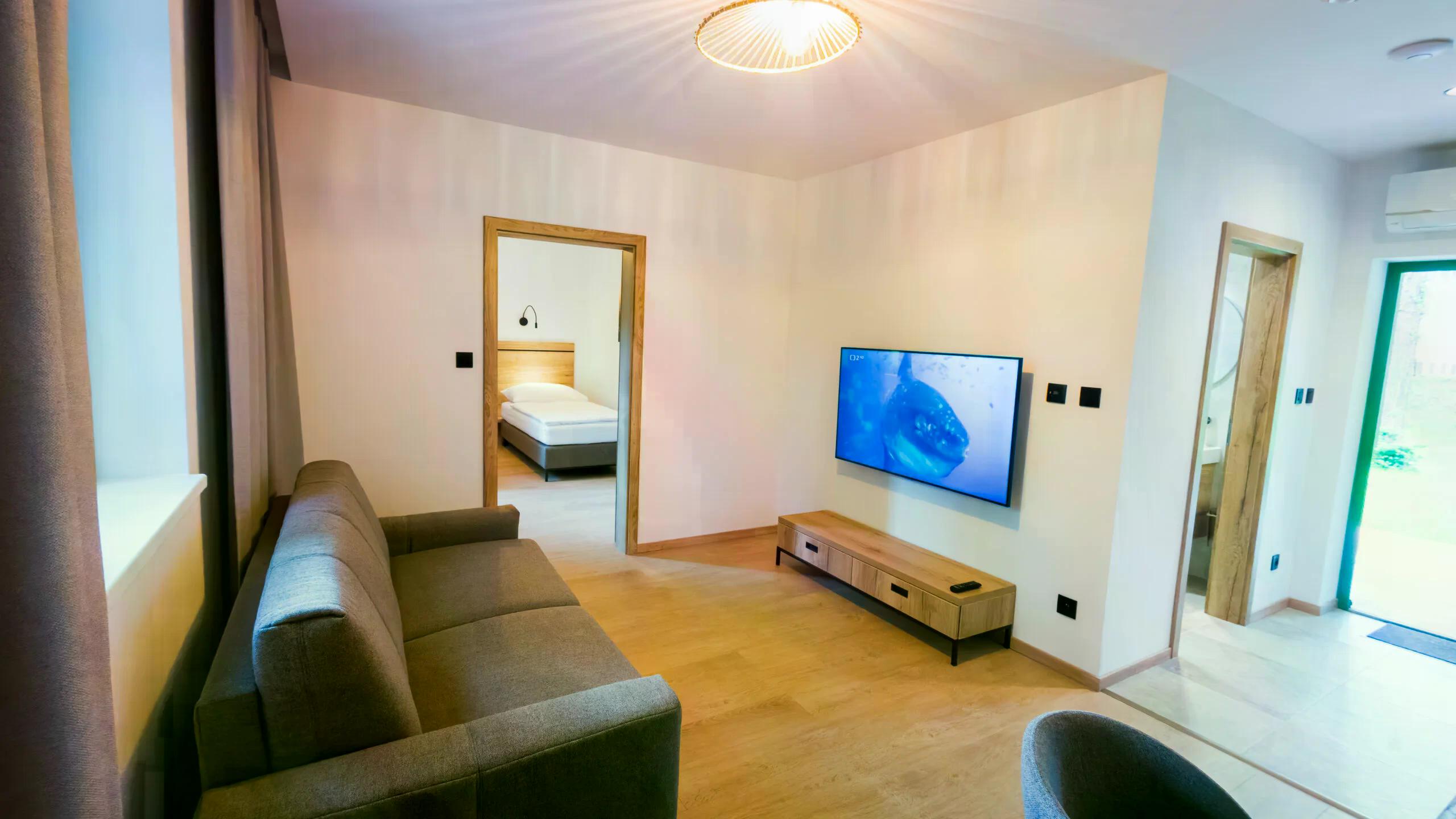 - Apartmán Lúč je dostupný na prvom aj na druhom poschodí v novopostavenom Dome Lúč. Ponúka priestranné ubytovanie so spoločnou terasou a sedením. Apartmán pozostáva zo spálňovej časti s manželskou posteľou alebo možnosťou oddelených postelí a obývačky. Apartmán je ideálny pre páry, rodinky s tromi deťmi, ale aj pre štvorčlenné skupinky. Súčasťou obývačky je rozkladací gauč ako plnohodnotné dvojlôžko. Apartmán má vlastnú kúpeľňu so sprchou a WC, klimatizáciu a spoločnú terasu so sedením, čo vytvára dokonalé miesto pre relaxáciu.
