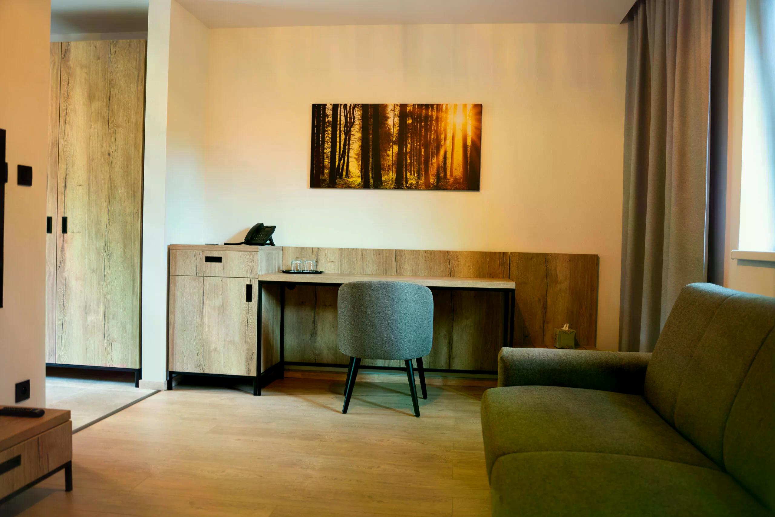 - Rodinné izby ponúkajú komfortné ubytovanie pre rodiny s dvomi deťmi. Izba disponuje manželskou posteľou s možnosťou oddelenia postelí. Súčasťou izby je rozkladacie kreslo, kde sa komfortne vyspí aj dospelá osoba. Menšie deti majú ubytovanie zdarma na zdieľanom lôžku na manželskej posteli. Izba má vlastnú kúpeľňu, klimatizáciu a spoločnú terasu so sedením. Ideálna voľba pre nezabudnuteľné rodinné pobyty.