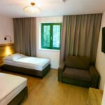 - Príďte si k nám užiť pobyt pod korunami stromov – Dom Duna ponúka ubytovanie v priestranných dvojlôžkových klimatizovaných izbách s rozkladacím kreslom – plnohodnotné lôžko, ktoré sú ideálnou voľbou pre páry hľadajúce pokojný pobyt uprostred prírody.