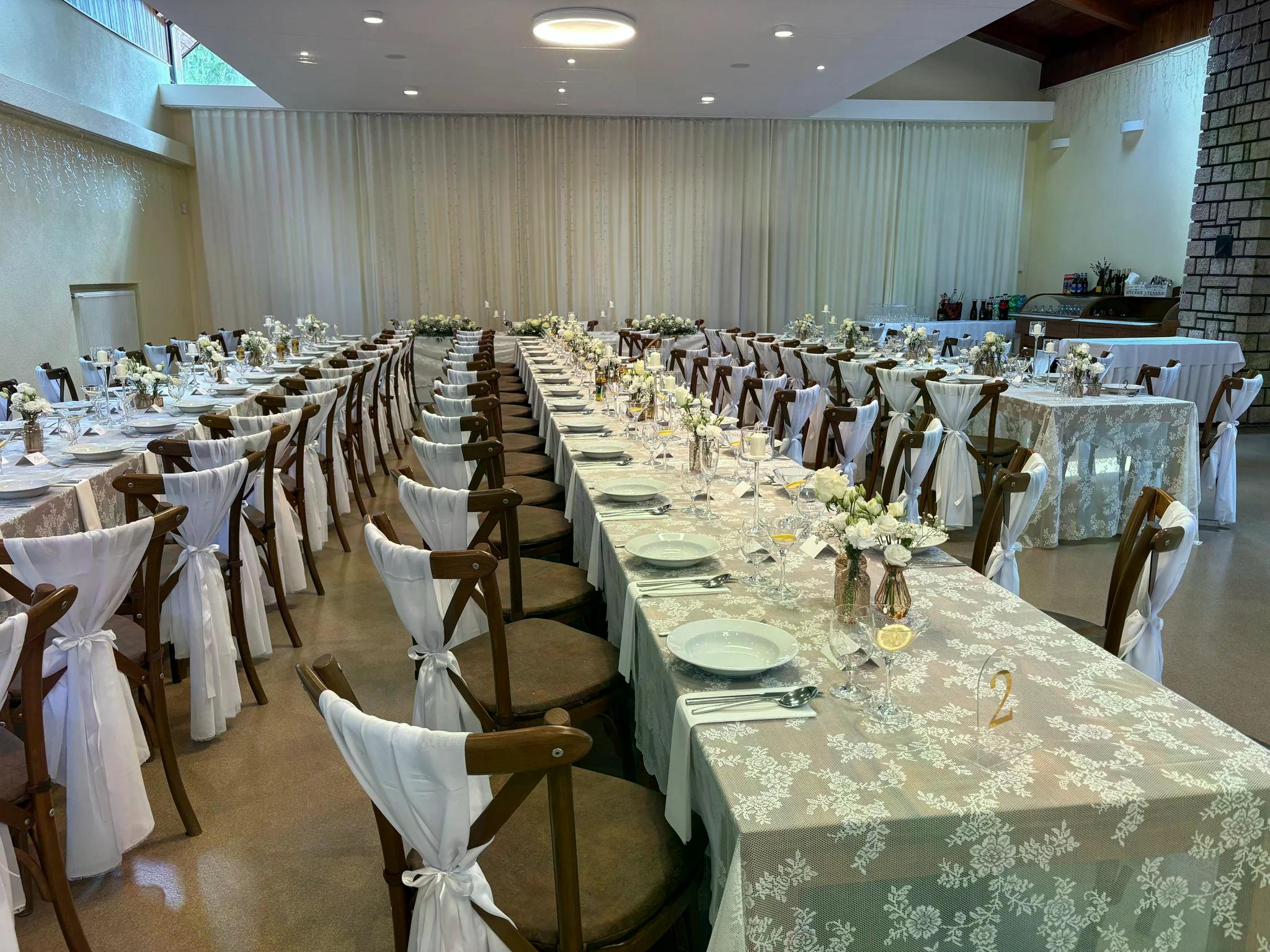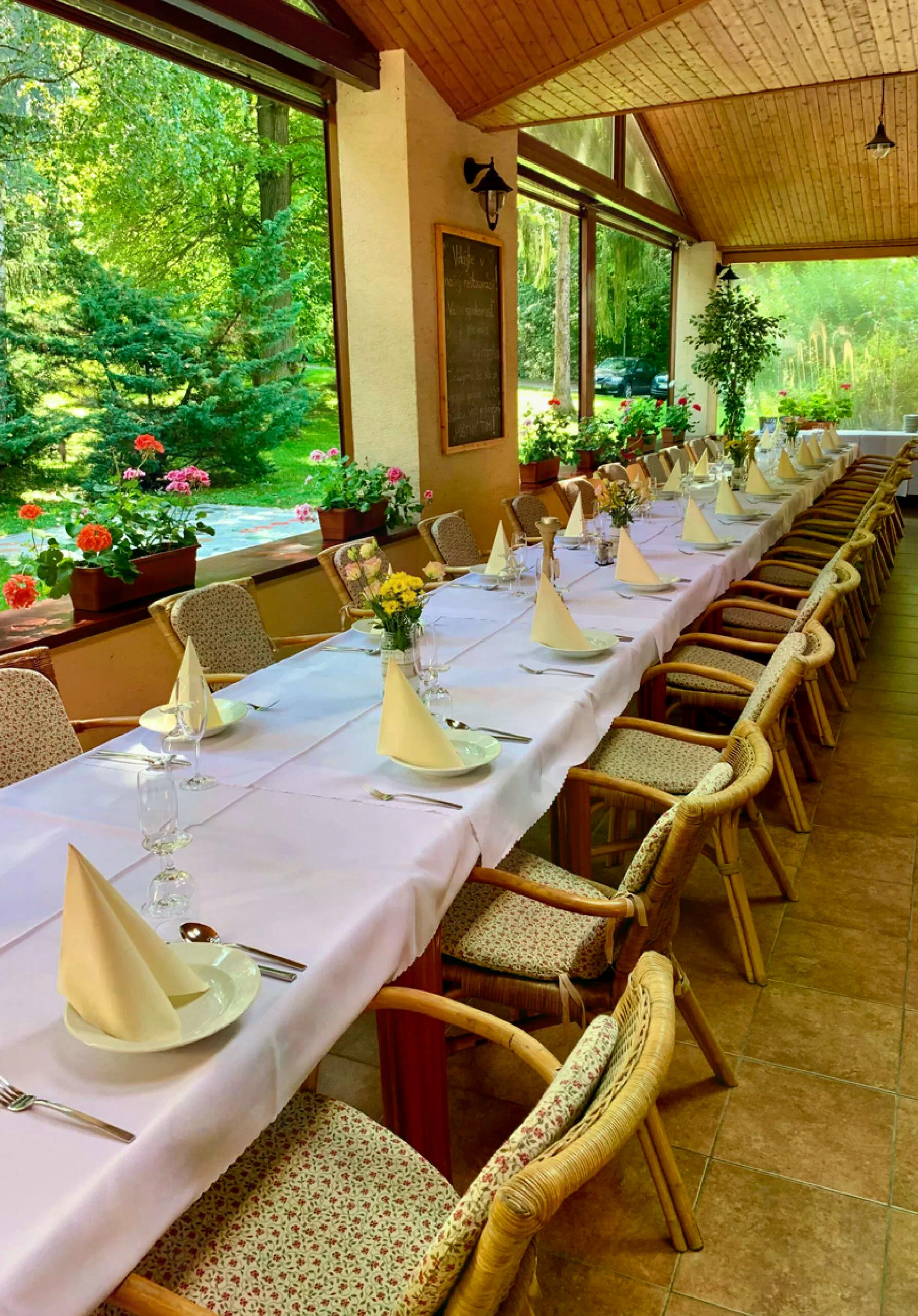 - Hlavným lákadlom areálu je priestranná spoločenská sála s kapacitou až 160 miest. Jej súčasťou je útulný bar a malebná letná terasa, kde si môžete vychutnať oddych a pohodu.